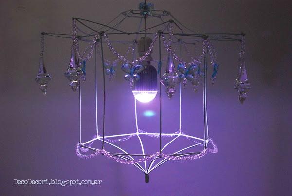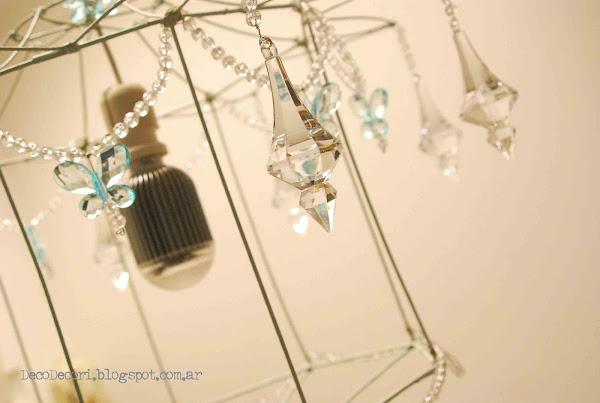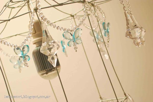 Si los papás mueven la lámpara los caireles y mariposas cuelgan de manera libre para mecerse.