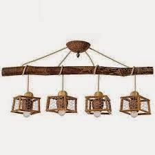 De estilo más rústico, las siguientes lámparas, en madera, metal y cuerda.