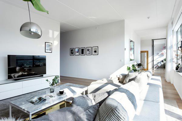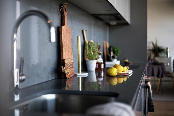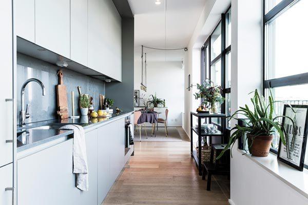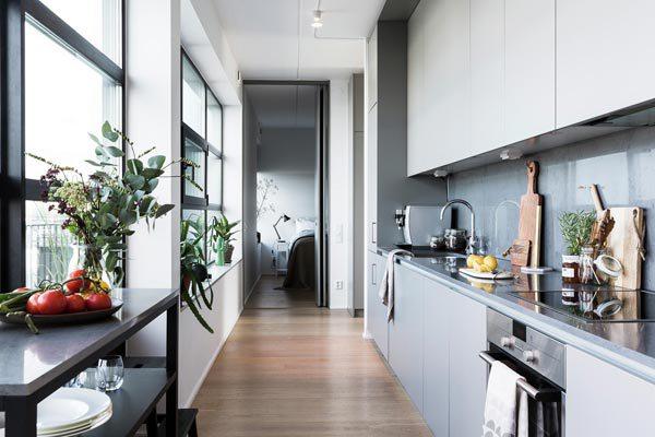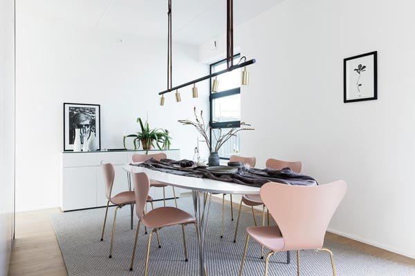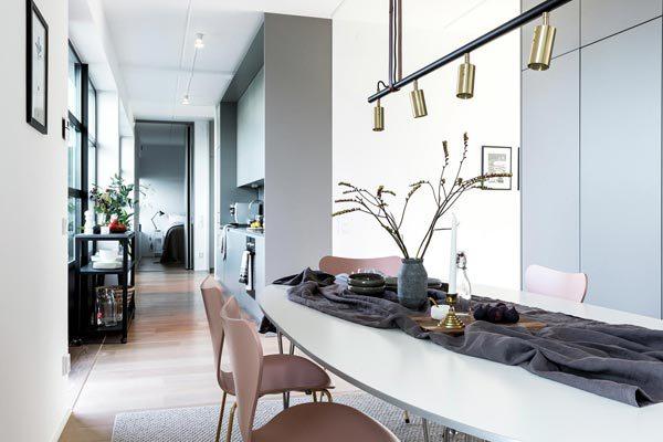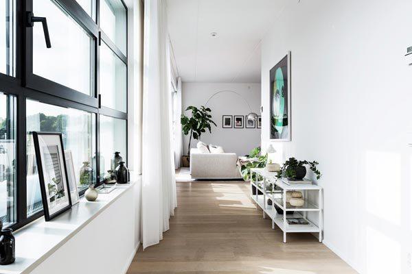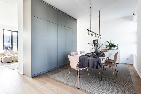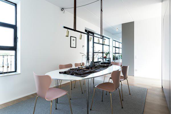 Es el caso de esta vivienda, me encanta como se ha resuelto la distribución alrededor del núcleo que forman las escaleras y ascensor del edificio. Si bien al iniciar el diseño de los espacios, este “grano” en medio del espacio, podría suponer un contratiempo, o impedimento a la hora de crear una estancias proporcionadas y homogéneas, pero la resolución del espacio que convierte la vivienda en un circuito alrededor de este núcleo me ha parecido perfecta. Esta misma solución adoptada tiene la particularidad de que permite a todas la estancias de la casa disfrutar de luz natural, lo cual es sin duda genial!