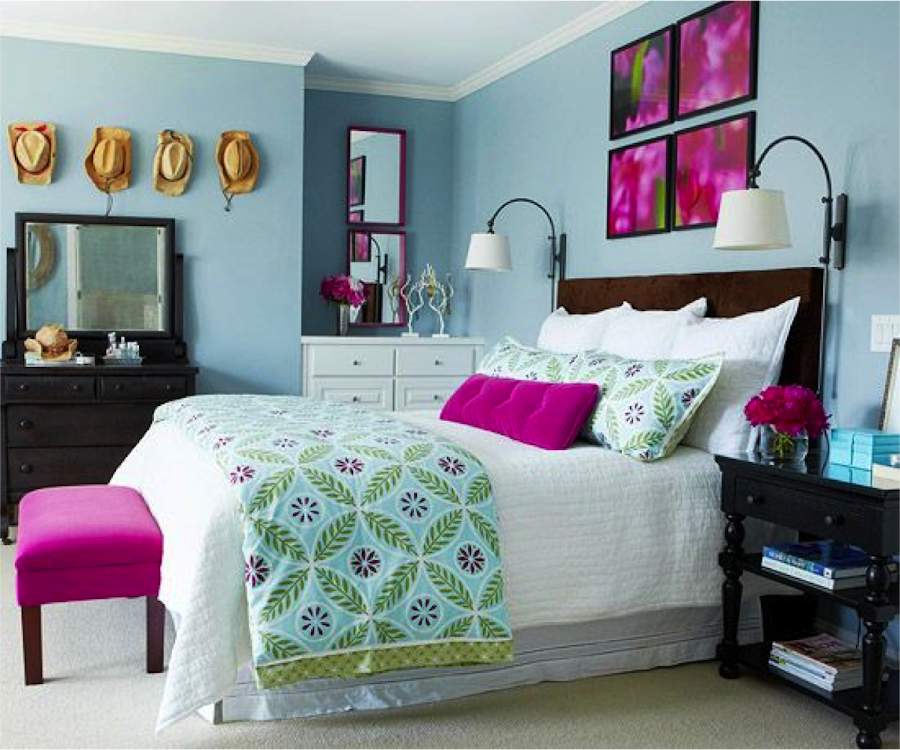 Si tienes un solo color, jugar con diferentes tonos de color, puede ser una buena idea. Puedes crear un espacio que tenga cohesión, jugando con distintas escalas y tipos de estampados de un mismo color.