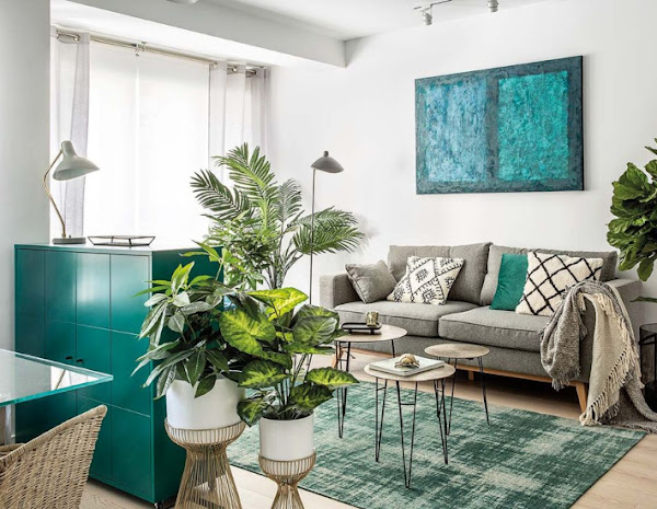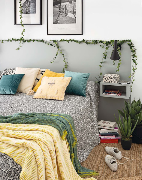 Las plantas siempre son un recurso perfecto para aportar frescor y sentirnos conectados con el exterior. Un recurso perfecto para los pisos de tamaño reducido. Plantas naturales, motivos de vegetación en el papel pintado, enredaderas en el cabecero........Apostar por las plantas es un acierto seguro.