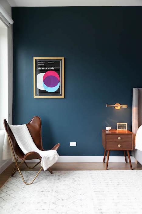 Paredes con carácter. Si te gusta aventurarte con el uso del color, pintar las paredes del dormitorio de azul te aportará calma y ayudará a conciliar el sueño. Sin embargo, los profesionales en Houzz recomiendan comprobar antes que el espacio cuente con suficiente luz natural para no sacrificar la amplitud ni oscurecer la habitación.