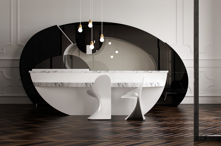 "¿Por qué se toma como un hecho que una cocina debe ser estar compuesta por cajas cuadradas?" se pregunta Giorgio Pittarokili, fundador y socio de Cassandra Cucine y creador de un particular modelo de muebles de cocina, basado en un diseño curvo en vista frontal con puertas asimétricas totalmente inéditas. La novedad con respecto al modelo original, radica en la incorporación del cristal, que se añade a la chapa natural, latón y acero inoxidable como materiales para los frentes de la cocina y han mejorado notablemente la estética. También han logrado adaptar la forma elíptica a tres tipos de diseño: La configuración paralela, la angular y la ortogonal, con o sin isla, que se basa en añadir muebles de columna adicionales a uno o a ambos lados, para otros aparatos electrodomésticos o para almacenamiento adicional. Son cocinas hechas a la medida, únicas, muy especiales y con un equipo que está dispuesto a viajar casi a cualquier parte del mundo para instalar y supervisar cada proyecto.