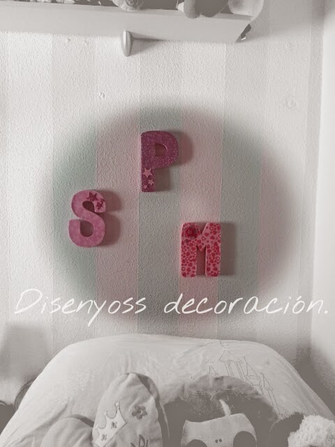 En el post anterior les enseñe un diy en el que hacia unas letras con carton y goma eva, pues bien estas letras iban destinadas a una pared del dormitorio de mis peques.
