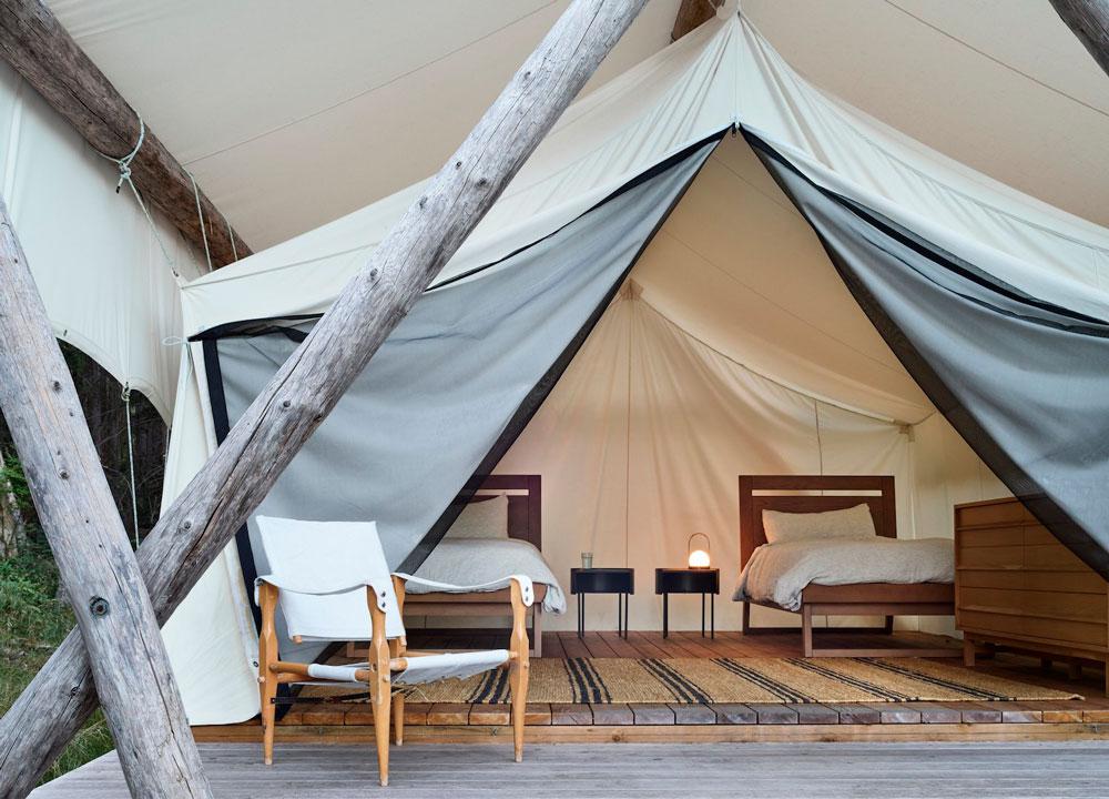 El cliente, tras acampar en la zona durante una temporada, decidió acudir al estudio de arquitectura de Laura Killamar y a la diseñadora Sophie Burke, para dar vida a este rancho familiar. La condición era levantar una vivienda acogedora pero informal, con posibilidades de hacer vida al aire libre, por lo que interior y exterior debían estar perfectamente conectados.