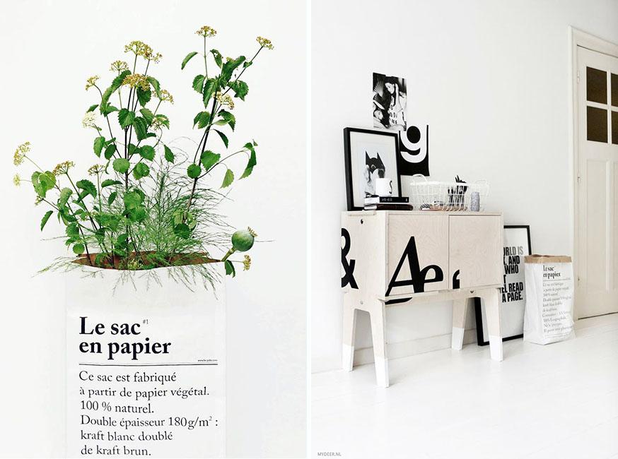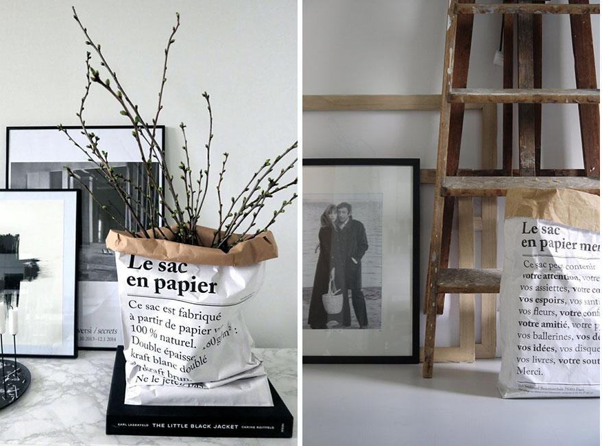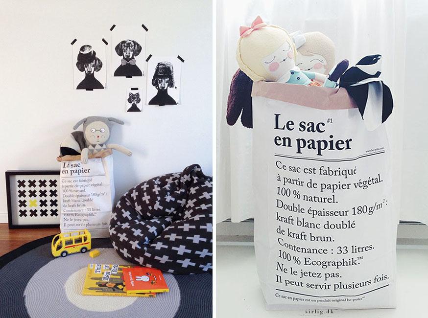 Le sac en papier es de esos complementos que dan mucho juego ya que la puedes colocar en cualquier rincón de casa y darle infinidad de usos. La puedes usar de papelera, para guardar material, meter los rollos de papel de regalo, de planera en la zona de trabajo, como juguetero en el cuarto de los niños, para el papel de reciclar, como cesto de la ropa sucia, como macetero improvisado, o simplemente como un objeto decorativo más.