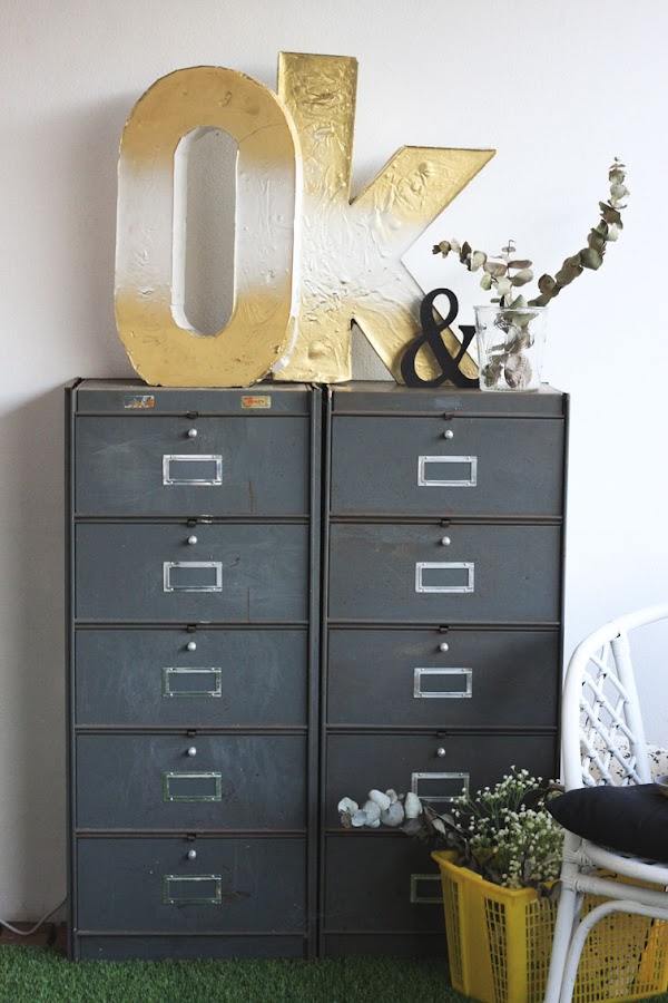 Si os digo la verdad, estoy entusiasmada con el resultado, aunque no es exactamente lo que tenía en mente. Utilicé cemento blanco, que es un material mucho más manejable, sin embargo el resultado no era todo lo industrial que yo quería (el lugar donde situarlas siempre estuvo claro: sobre los archivadores de la terraza!). Así que finalmente, decidí pintarlas con un efecto degradado con el que estoy muuuuuy contenta. Os cuento los pasos!