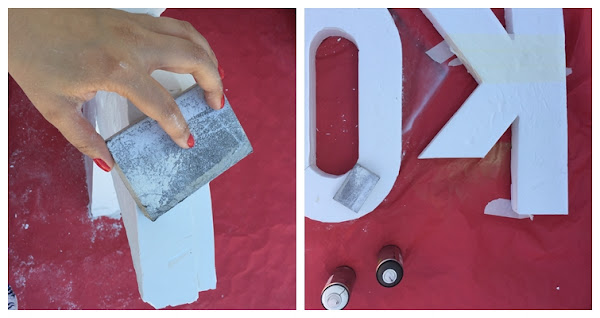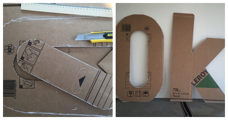 MARCAMOS CON ROTULADOR O TIZA NUESTRAS LETRAS. EN MI CASO, UNA "O" Y UNA "K". PODÉIS UTILIZAR PLANTILLAS O BIEN HACERLAS A MANO CON LA REGLA :)