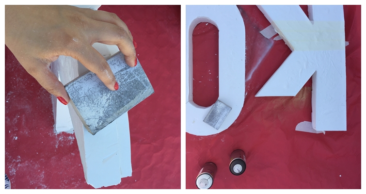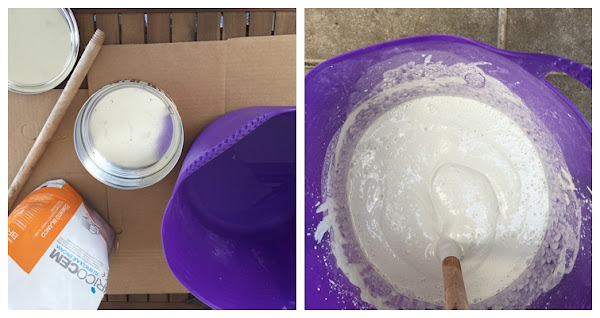 PREPARAMOS EL CEMENTO BLANCO SEGÚN LAS INSTRUCCIONES. PARA UNAS LETRAS DE ESTE TAMAÑO, NECESITÉ 4 BOLSAS DE 5 KG.