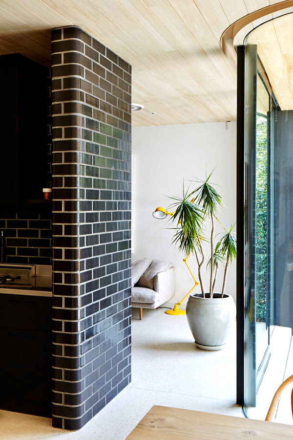 Hoy os traemos una casa en Melbourne en la que viven una arquitecta y un constructor con su familia. The Design Files nos ha descubierto esta vivienda arquitectónica de una clara línea retro, en la que el exterior dibuja un interior curvado, fácil de recorrer y acogedor, y lo viste con sus propios materiales, ladrillo cara vista o cemento.