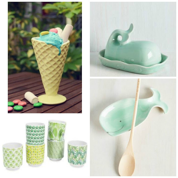 Por último, caprichos para mi futuro hogar. Una copa para los helados que nos comeremos en el sofá. Una mantequera para los desayunos de fin de semana. Unas tazas de estilo tropical para desayunos veraniegos. Un reposa cuchara con forma de ballena a conjunto con la mantequera.