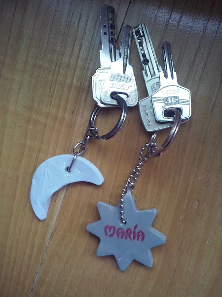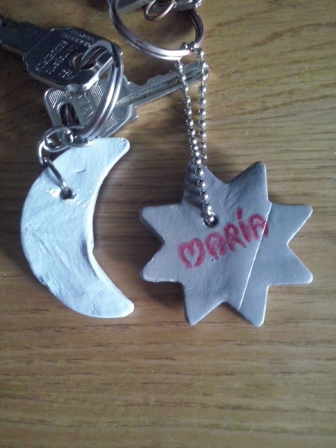 Con lo que hoy os mostraré simplemente unos sencillos llaveros hechos con unos moldes de galletitas que me traje hace unos días de el super. El primero que os muestro es un corazón, venían también un rombito, una estrella, una luna y un osito.