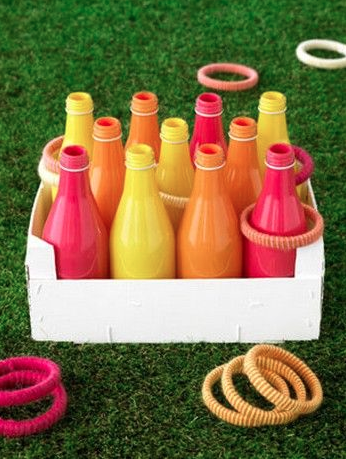 1. Pintar unas botellas y con unos aros de madera( pensaba que podía servir los de las cortinas antiguas)