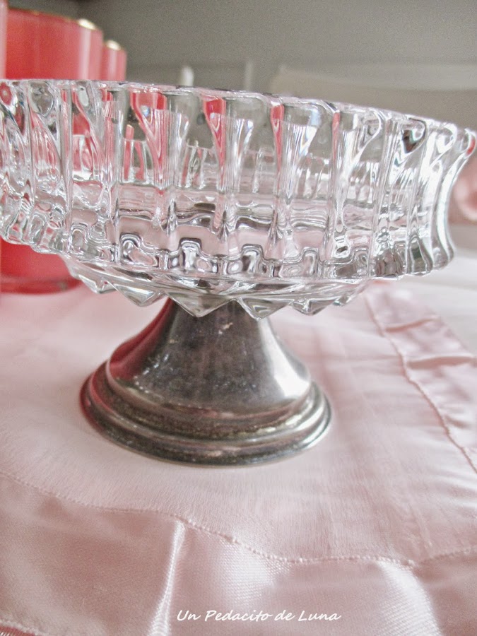 Un precioso cuenco de cristal labrado con pie de alpaca....