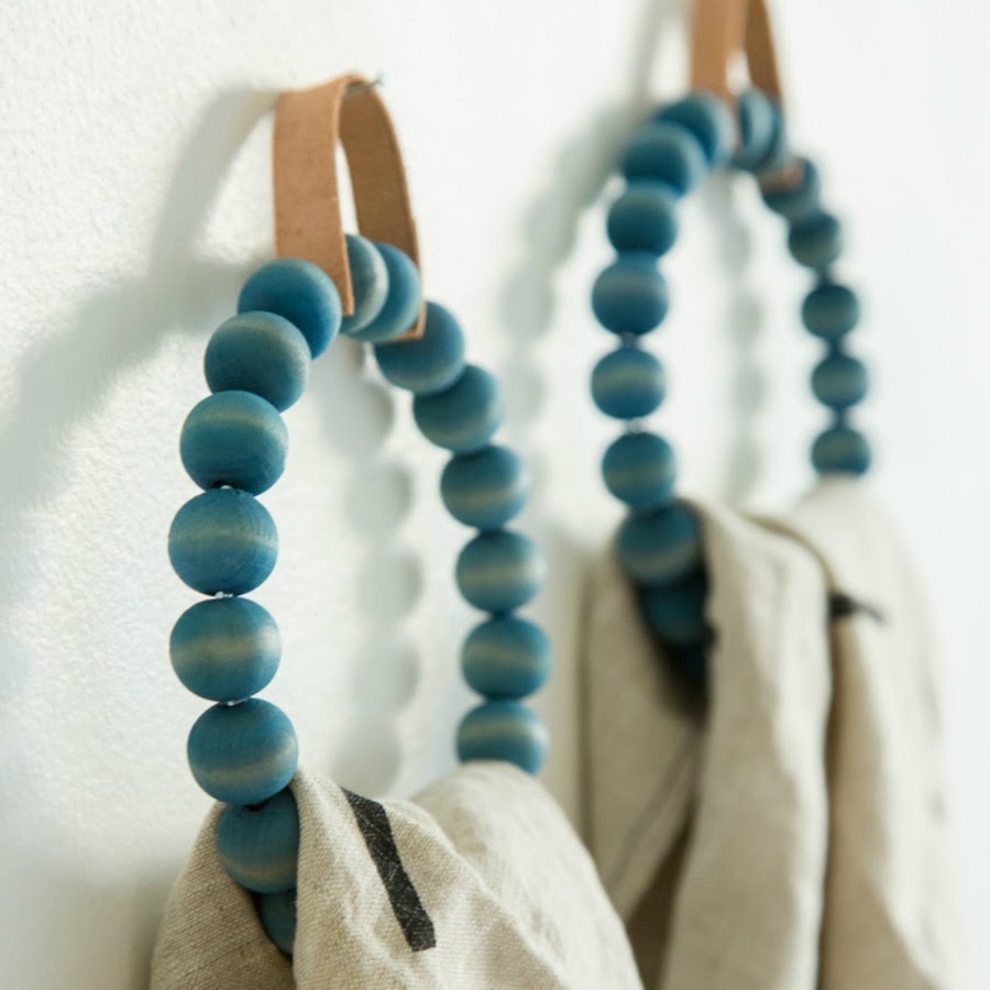 Un sencillo diy para crear un toallero con bolas de madera teñidas. El delicado blog estilo escadinavo nos acerca este preciosa y sencilla idea para hacer tu mismo con unas bolas de madera, tinte, alambre y un trozo de cuero.