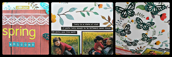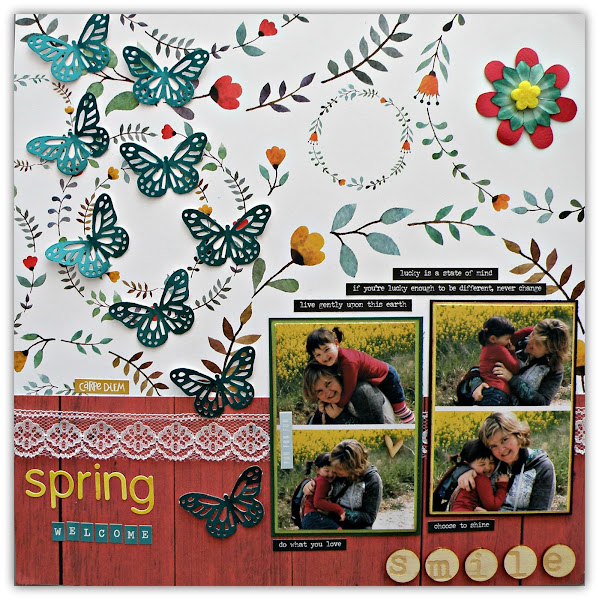 Tenía ganas de plasmarlas en una página y tenía claro que el papel escogido sería éste. Y, claro está, como es primavera, no podían faltar las mariposas.