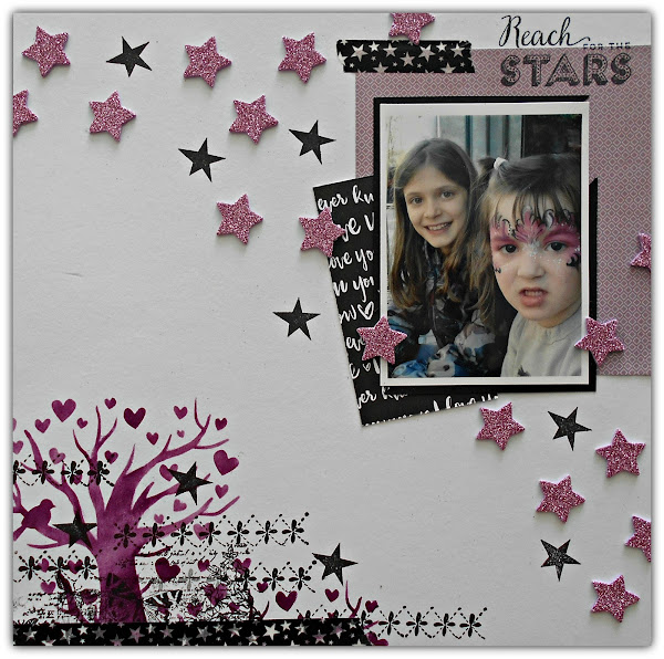 A partir de una página completamente en blanco, éste ha sido el resultdo. Aunque creo que con lo que me gusta la purpurina, aún hay poca....