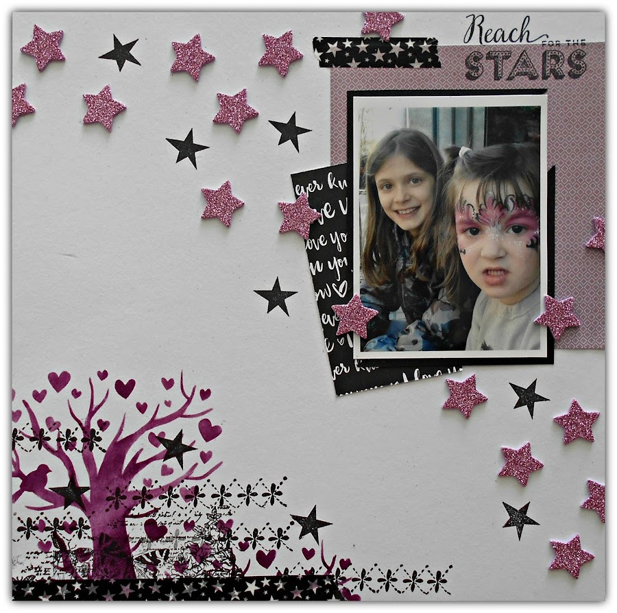 El primero de ellos es este layout para el reto del mes de Locas por el scrap. Éste tenía que ser el primero, ya que su requisito era el brillo!!! Y l@s que me conocéis sabéis que yo soy rollo cuervo con lo brillante!!!
