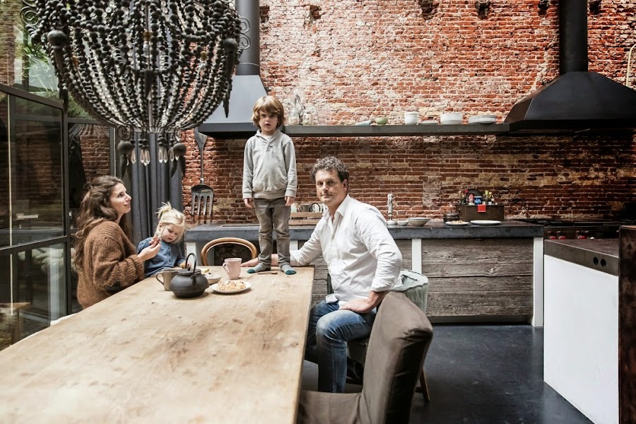 Marius Haverkamp es diseñador de interiores y su mujer Emily Grey que tiene una marca de moda infantil. Encontraron un antiguo almacén en Ámsterdam y lo convirtieron en su vivienda que comparten con sus dos hijos.