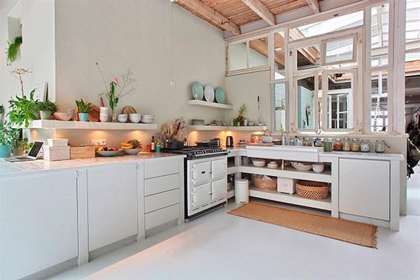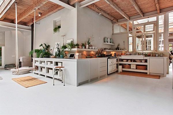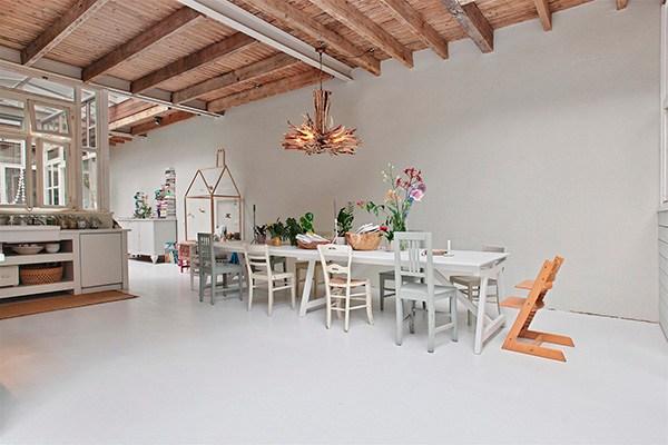 Normalmente ya sabeis que soy una enamorada de los espacios pequeños y acogedores, pero en este caso, esta amplitud y calidez de se extiende en cada metro de este loro me han parecido alucinantes, una cocina preciosa y perfecta para vivirla, el atelier, la zona de estar… todo en una perfecta consonancia cromática y bañado por unos ventanales que lo llenan todo de luz.