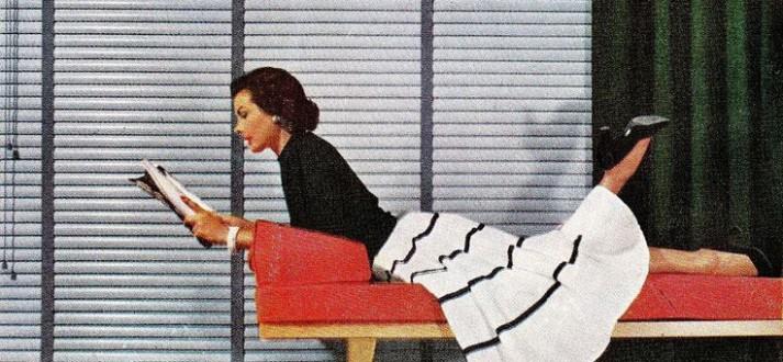 En realidad, estos tipos de cortinas o persianas que te mostramos, si bien se siguen usando hoy en día, fueron una revolución estética en la década de los 50. Unido a la arquitectura moderna, que trajo casas con grandes ventanales, la forma de matizar la luz se tenia que aligerar de los grandes cortinajes de varias capas de los años anteriores.