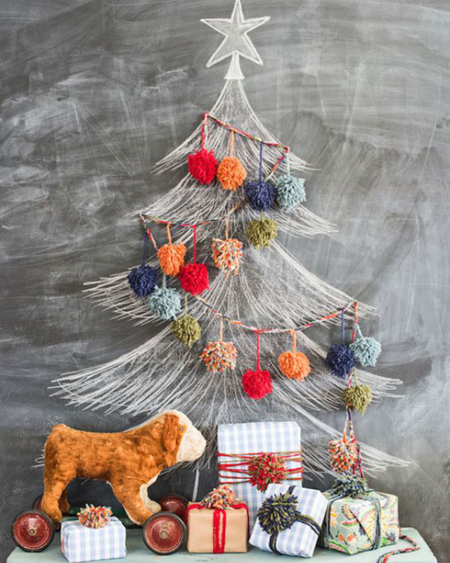Terminamos con los árboles de Navidad originales con este abeto pintado en una gran pizarra. Luego los adornaremos con una bonitísima guirnalda de pompones de lana...........¡El resultado es precioso! Si os gusta esta idea en este post os dejo más árboles y decoracón Navideña en una pizarra.