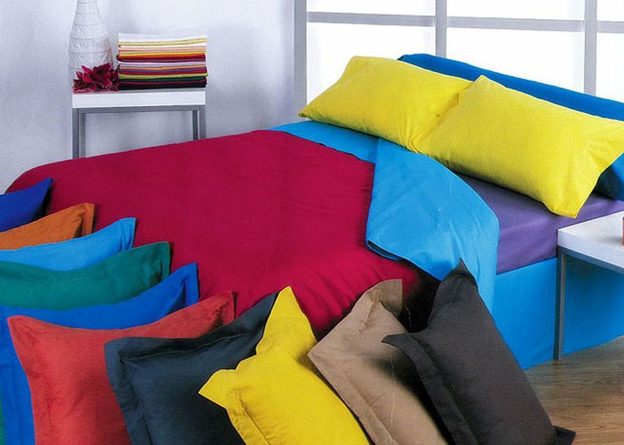 Pero si lo que quieres es un dormitorio sencillo, puedes optar por combinar colores simples en el juego de cama. Los cojines formarán buena parte de este decorado y te invitamos a que los elijas en colores lisos y fuertes que puedan contrastar entre ellos. Mira esta inteligente propuesta de Cortinahogar.