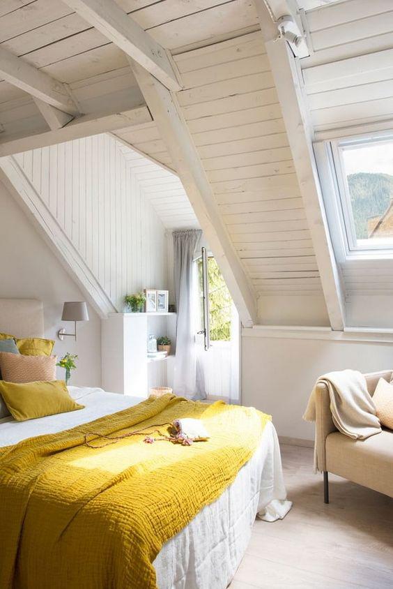 El amarillo tiene un efecto ligero porque parece venir de arriba. Una habitación con techo amarillo es alegre, porque parece inundada de luz solar.