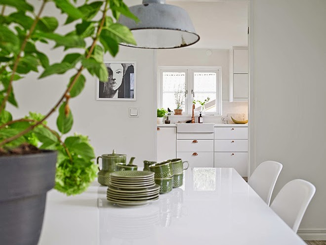 Sencillez, simplicidad y comodidad, serían los adjetivos que utilizaría para describir esta cocina. La presencia del blanco, tan adorada por mi, los elementos de vegetación, la grifería de cobre y cada perfecto detalle, tanto en utensilios como en la vajilla hacen de esta cocina que se convierta en un espacio inmensamente inspirador. ¿Tenéis la misma sensación que yo?