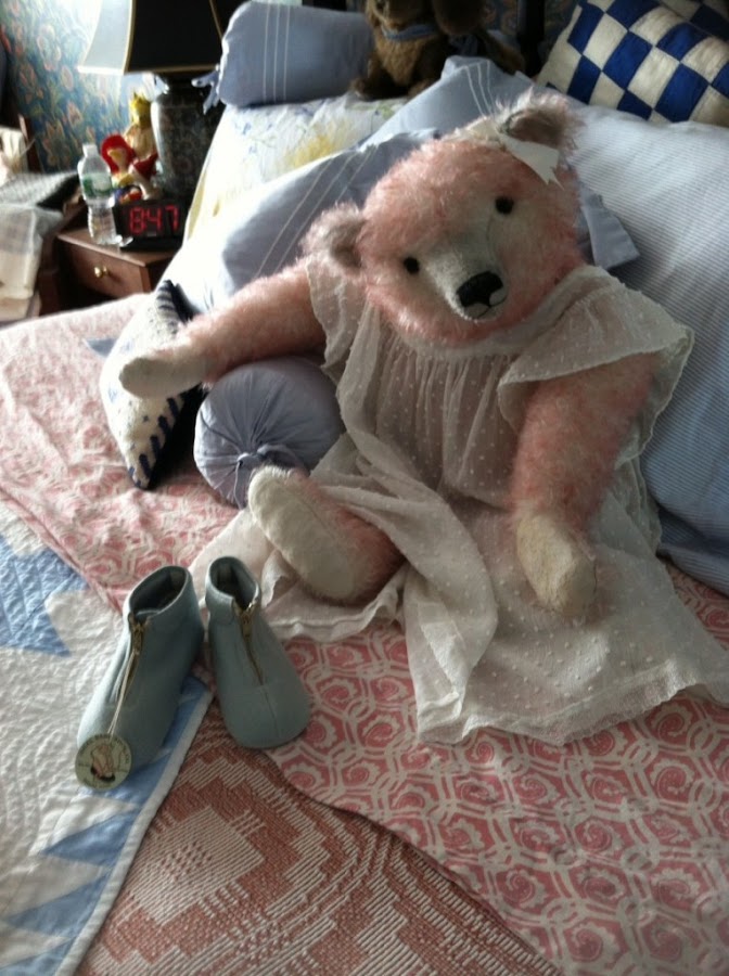Una de nuestras Julias, a los pocos días de nacer, fue obsequiada con un bonito osito de peluche rosa. Rápidamente fue bautizado como Manolito y se convirtió en el amigo inseparable de su dueña. En un descuido, Manolito desapareció, con la consiguiente tristeza de su "mamá adoptiva". Sus progenitores, a sabiendas que a los niños no hay que consentirles tanto y deben aprender a gestionar sus frustraciones, cayeron en la tentación y le compraron otro Manolito idéntico al anterior. Julita estaba feliz como unas castañuelas, cuando, por obra de la suerte, el primer oso apareció. A partir de entonces, "los Manolos" nunca faltarían en los sueños de la niña. Al nacer su hermano Quique, también él fue obsequiado con el mismo osito, pero celeste (cosas de la diferenciación de sexos....) y de menor tamaño que el de su hermana. Y como él no iba a ser menos, también por partida doble. Los cuatro Manolos, siguen en casa, descoloridos, deshilachados, recosidos....., pero siguen. Son parte de la vida de esa familia y nadie los va a tirar, por muy feuchos que estén ya.