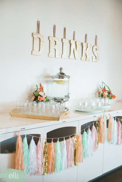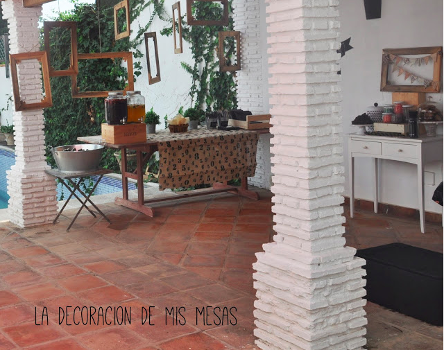 Porque cuando no hay tiempo para grandes montajes de fiesta, es una buena idea poner una pequeña mesa auxiliar con las bebidas. El candelabro colgante que aparece en la foto lo hice en un rato (puedes ver el tutorial aquí).