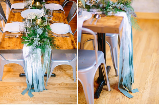 Una preciosa mesa con un camino de mesa hecho con tiras de tela y hojas ... ¡sin palabras!.