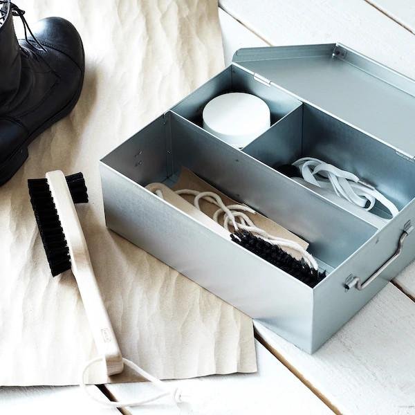 ¿Prendas de paño llenas de pelusas o pelos de mascota? Los cepillos para prendas era algo que no faltaba nunca en los hogares de antaño. Así, el de la colección BORSTAD está elaborado con madera de haya macizo y plástico amídico (4 €). Y junto al cepillo para ropa, encontramos el cepillo para los zapatos (4€), infalible para la limpieza de modelos de ciertos materiales como el ante. Por ejemplo, si nuestro hijo vuelve a casa con los zapatos llenos de barro, tan solo tendremos que dejar secar y después frotar bien con el cepillo.