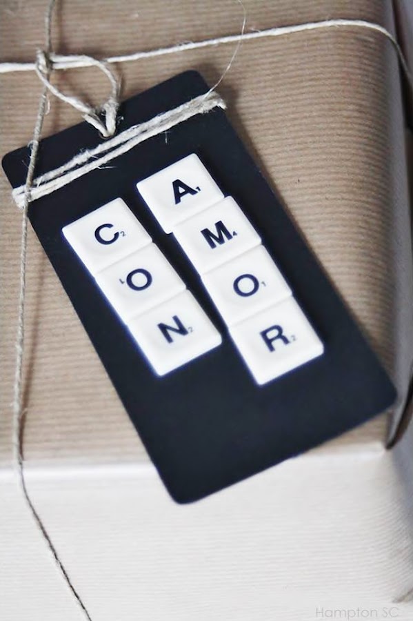 letras del Scrabble con cinta adhesiva de doble cara formando