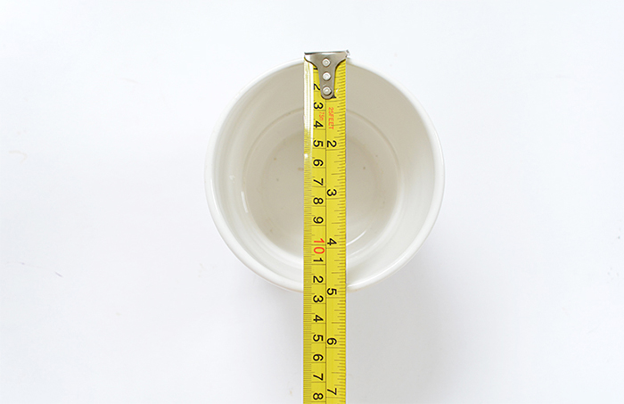 2. Medimos el diámetro superior del macetero y le quitamos un par de centímetros, para que pueda quedare suspendido sin colarse totalmente por el agujero.