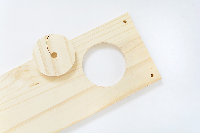1. Hacer los agujeros a la balda, 4 en concreto para poder pasar la cuerda y que el peso esté totalmente compensado.