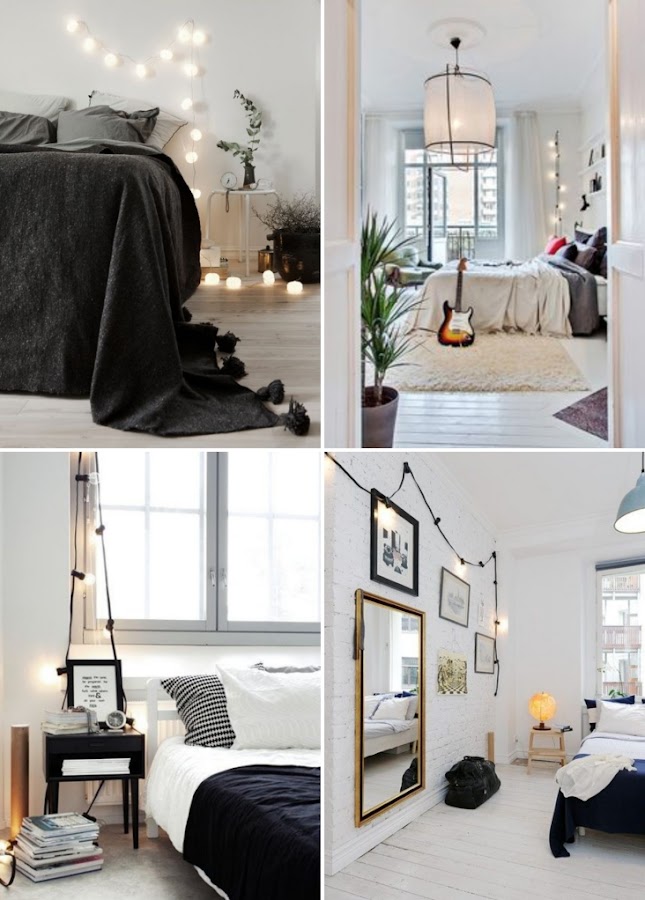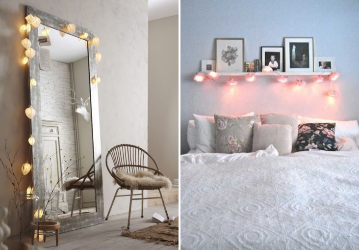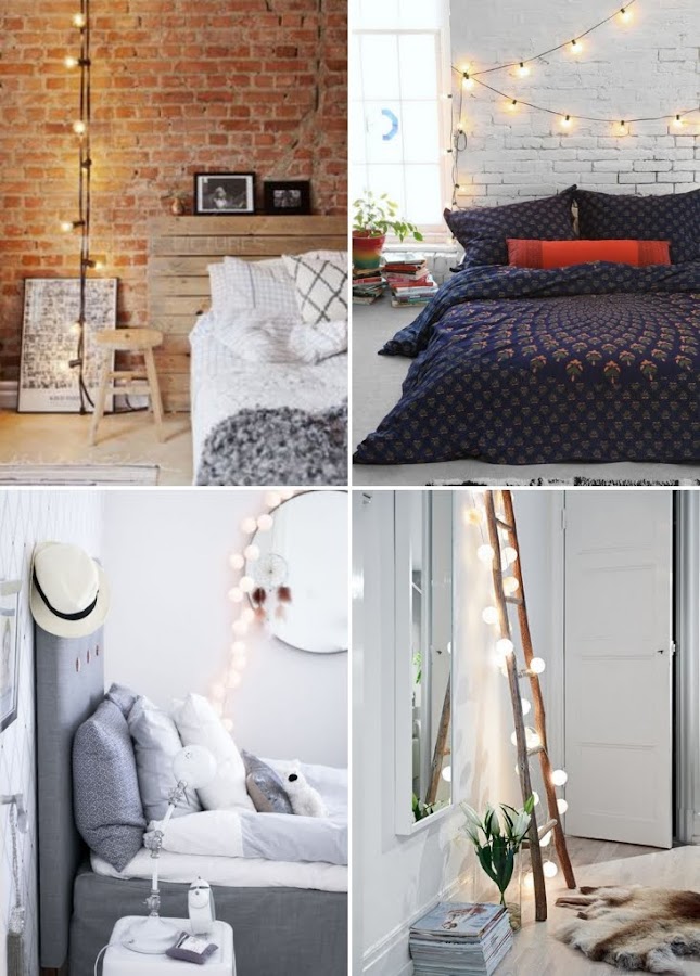 Con pocos detalles podemos cambiar el ambiente de la decoración de casa, y una de las formas más económicas es por ejemplo utilizar guirnaldas de luces decorativas. Crean un ambiente de armonía y tranquilidad ideal para relajarse al final del día. Seguro que habéis visto muchos ejemplos en muchas webs y blogs de decoración, donde nos enseñan que se puede adaptar esta técnica en cualquier estancia de la casa. Mi preferida es en el dormitorio ya que ayuda a relajarse y es el lugar perfecto para ello. No obstante quedan muy bien también en terrazas como luz de ambiente para una cena en pareja o más festiva con amigos. Hoy os muestro unos cuantos ejemplos donde utilizar estas guirnaldas, ya sea en dormitorios, como recibidores, en un rincón de trabajo o terraza.