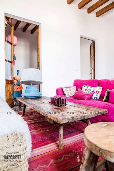Con esos azulejos tan coloridos y diferentes en cada una de las estancias, la decoración parece emerger del suelo y salpicar toda la casa. Puffs indios, maderas recuperadas, piezas antiguas reutilizadas, un blandito sofá rosa y, nuestra favorita: la cocina con una mesa playera, las sillas mezcladas y la tabla de surf. Y si algo nos gusta en Antic&Chic son las piezas reutilizadas y llenas de color, si tú también eres de los nuestros, pásate por nuestra shop online y descubre esa pieza que encaja contigo. Pero si no la encuentras, seguro que podemos ayudarte a conseguir hacer realidad tu proyecto. Feliz martes!!!