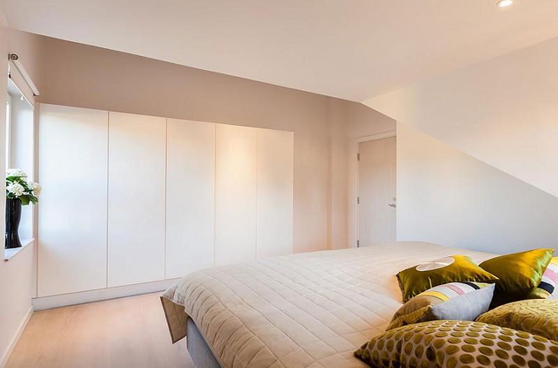 En la cocina, nos encontramos con una barra circular que podemos usar para nuestros desayunos informales, o simplemente para compartir una buena charla mientras cocinamos. El mobiliario está super aprovechado al encontrarse en un retranqueo del tejado, de esta manera al compartir espacio con el salón, queda muy disimulada y no parece una cocina sino otra zona del salón.