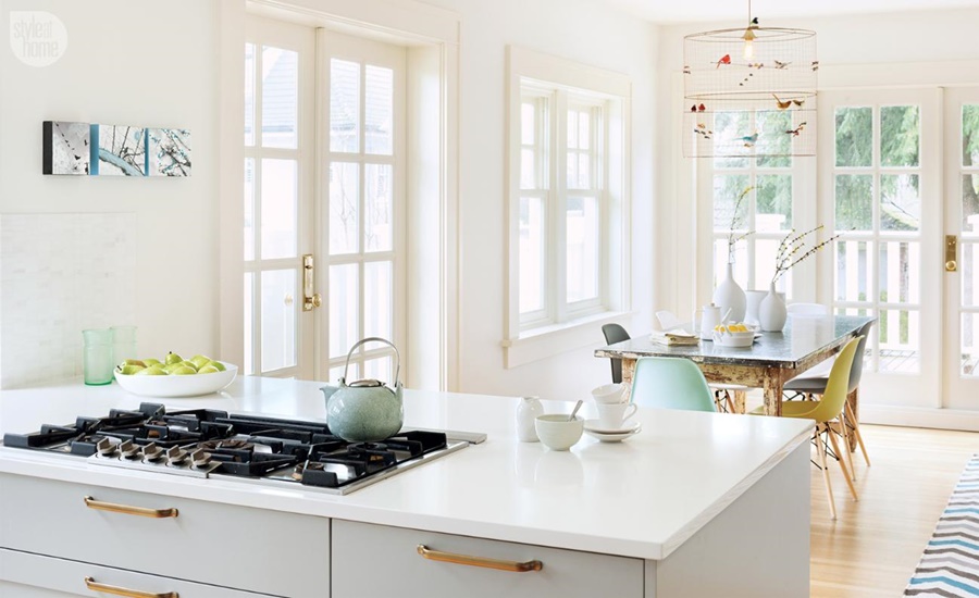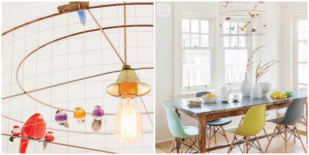 En esta casa conviven tanto los colores pasteles como los colores vivos, el mobiliario de estilo nórdico con el vintage, piezas rescatadas que aportan el aire de sofisticación. La cocina y el baño tienen esa luminosidad que tanto buscamos en algunas casas además le ayuda el color blanco que predomina. Muy de moda es incluir la zona de trabajo en la cocina y aquí han conseguido un tándem perfecto Y a mi me ha encantado la nota de diversión que han conseguido con la lampara del comedor "una jaula de pájaros" y oye es preciosa y muy ingeniosa la idea.