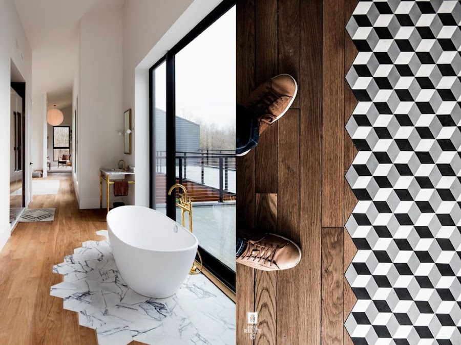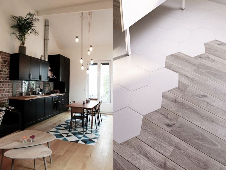 Combinar suelos de madera con cerámica, da un toque diferente y atractivo al espacio. Estamos acostumbrados a ver esta combinación por separado, en las transiciones de una estancia a otra pero hoy hablamos de combinar estos materiales nobles dentro de una misma estancia, obteniendo resultados con mucho carácter ¿Te quedas?