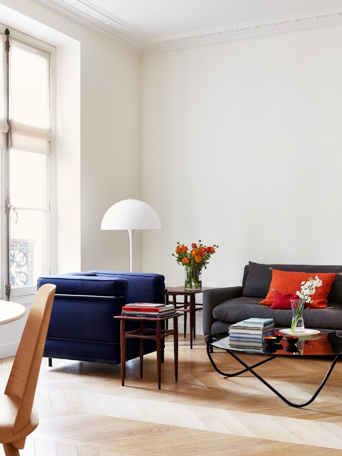 Me he encontrado navegando por la web este magnífico piso en París. Un elegante piso con gran altura de techos, suelos en espiga de madera natural, increíbles molduras clásicas, una chimenea de mármol antigua.... y que a mi parecer se adecua a la perfección con la vida y estilo modernos.
