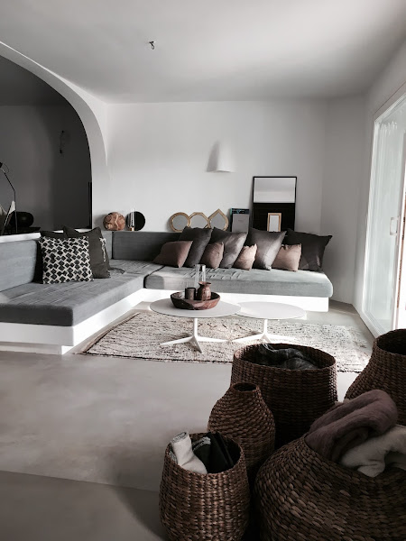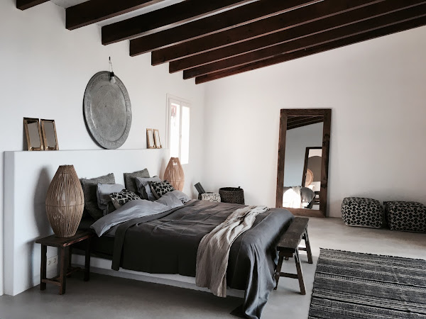 Linos, alfombras marroquíes... objetos y cestas de ratán...