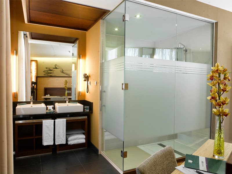 En esta otra fotografía podéis apreciar que la puerta de paso que separa la habitación del baño también es de cristal esta vez transparente para conseguir la sensación de mayor amplitud.