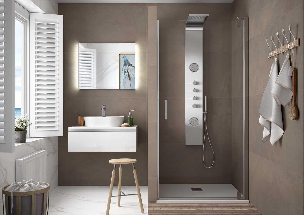 Si por algún motivo no nos encaja ninguno de estos modelos, y tenemos un espacio muy reducido para instalar la mampara, Salgar cuenta con el modelo Habitat. La mampara Habitat de Salgar es de una sola hoja híbrida entre las puertas pivotantes y las plegables, ofreciendo la solución ideal para baños pequeños.