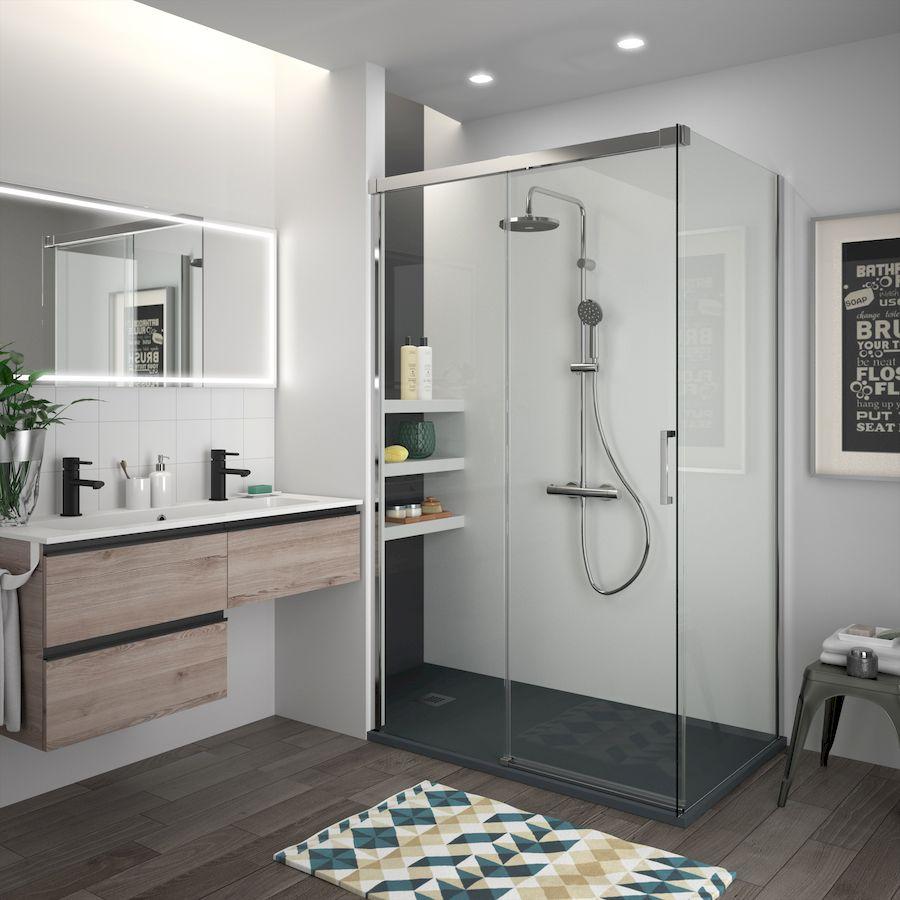 ¡Oferta! Mampara angular ducha de un fijo y una puerta – Serie Malmö – Salgar
