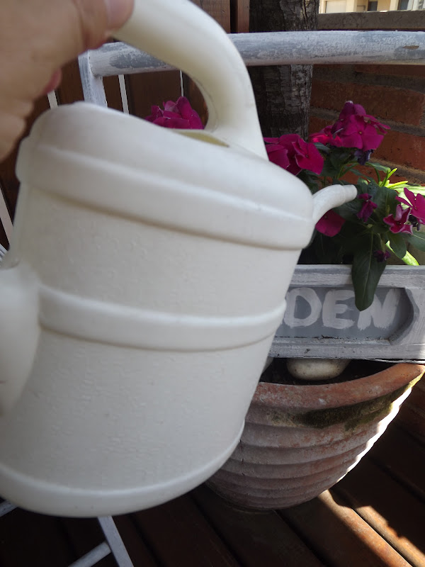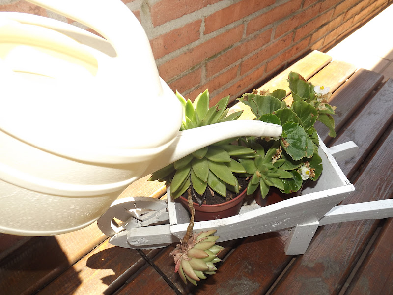 Mis plantas no sé si resistirán los más de 33º diarios,pobrecitas a pesar de todo ahí están luciendo como pueden en mi pequeña terracita de mi habitación...Así que hoy me he dedicado un poquito a ellas,riego,algo de abono,recortar las flores marchitas y pulverizarlas para darles algo de humedad...seguro me lo agradecerán y sé que aunque dan muchísimo trabajo y horas de estar por ellas no concibo mi hogar sin ellas...soy de las que piensan que una casa sin plantas carece de vida y alegría...