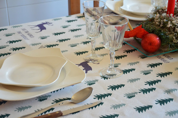 Pues como hoy comemos un poco mas tarde de lo normal, os dejo fotos de mi mesa navideña en riguroso directo jajaja. Como siempre, el enlace al mantel lo encontraréis al final del post.