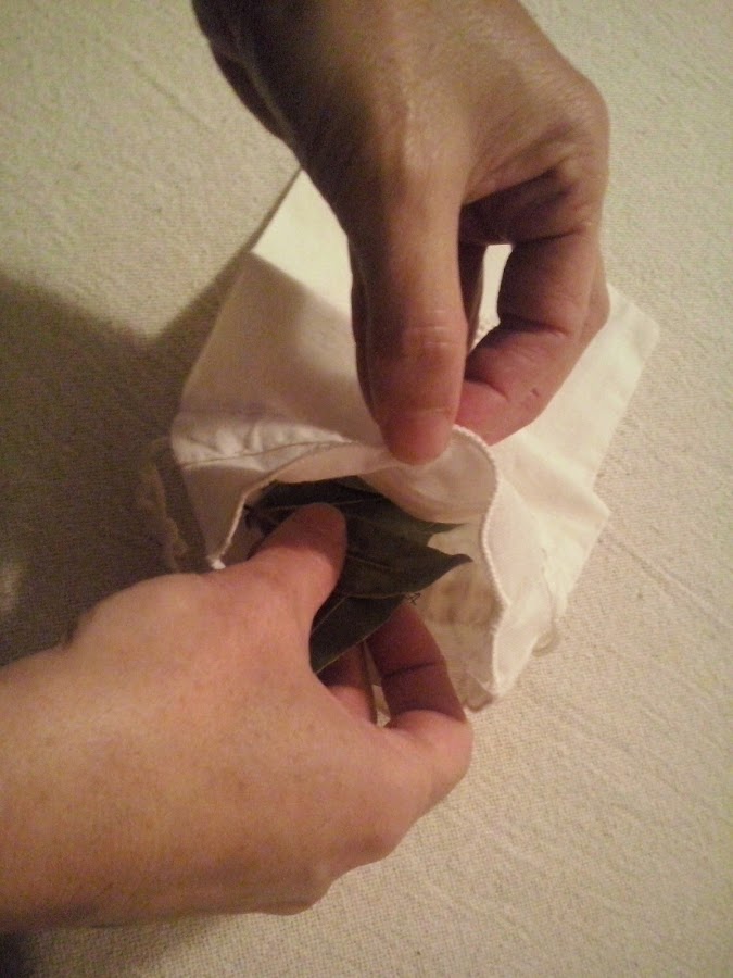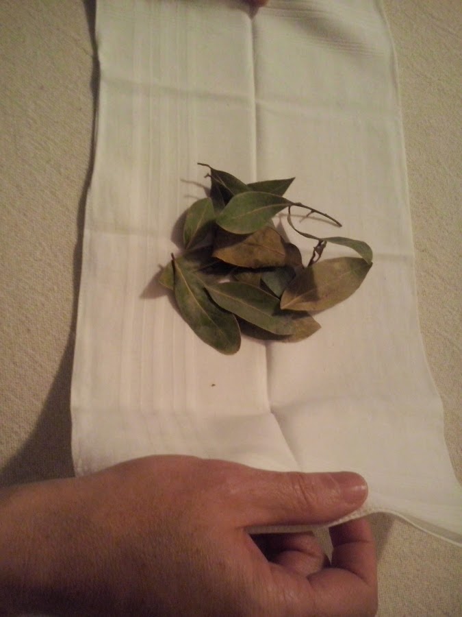 A continuación pongo en el pañuelo unas hojas de laurel.