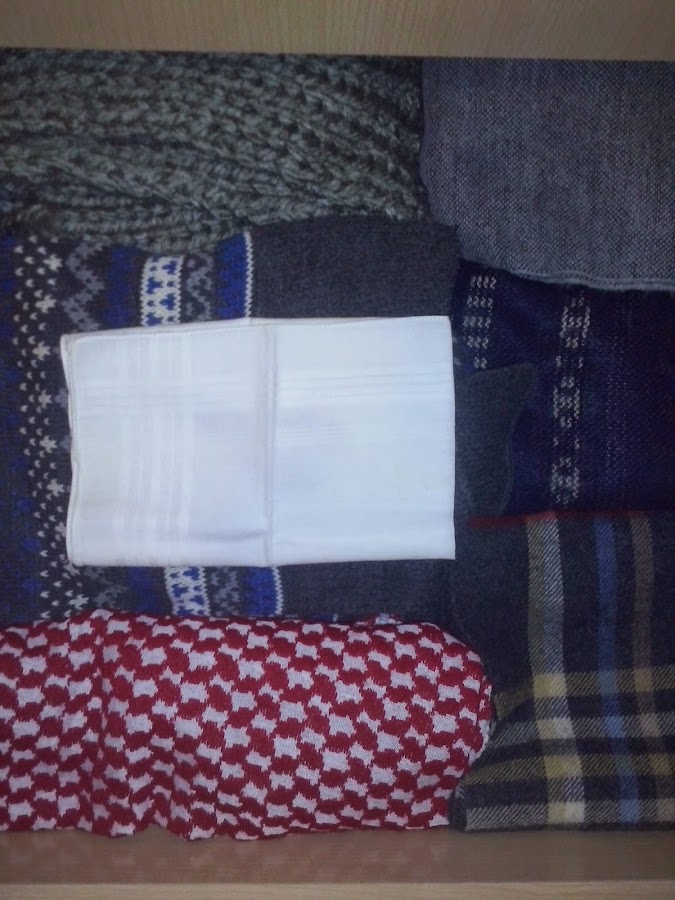 Las bufandas, gorros de lana y guantes yo las guardo en un cajón. Después de lavarlas, las doblo de forma que queden ordenadas y no quede ningún hueco en el cajón.